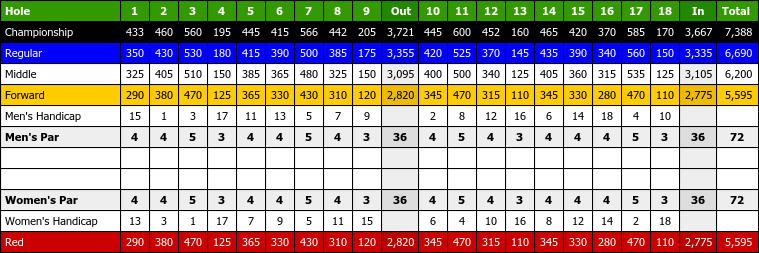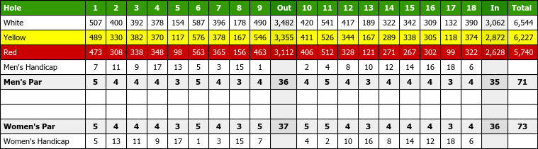 Golf Course of Concordia. The course rating is 742 and it has a slope rating of 144 on Blue. WC - Championship CPGA Oct 3-Oct 4.